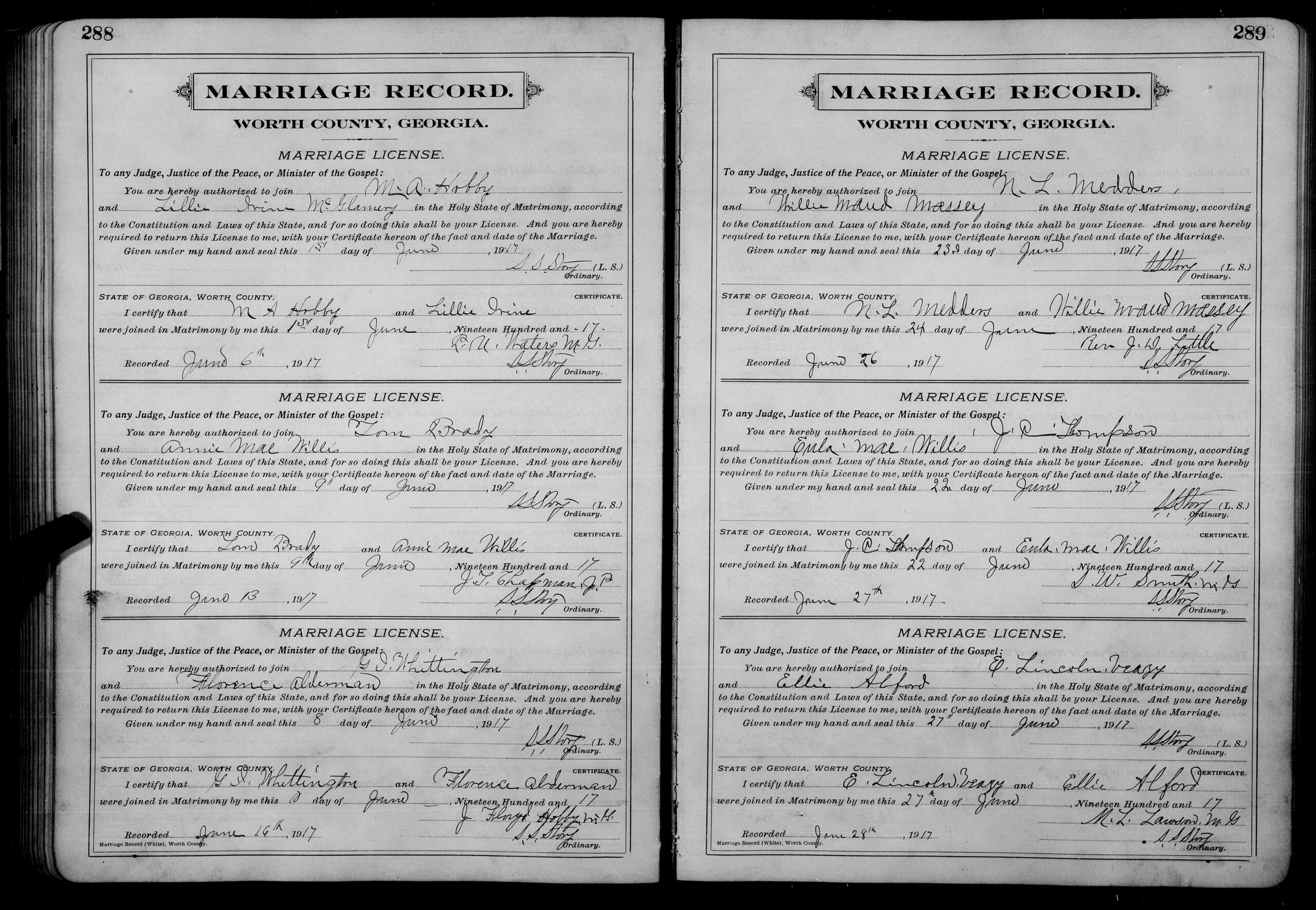 Isaiah Whittington married Florence Alderman in Worth, Georgia, on June 10, 1917, when he was 20 years old.