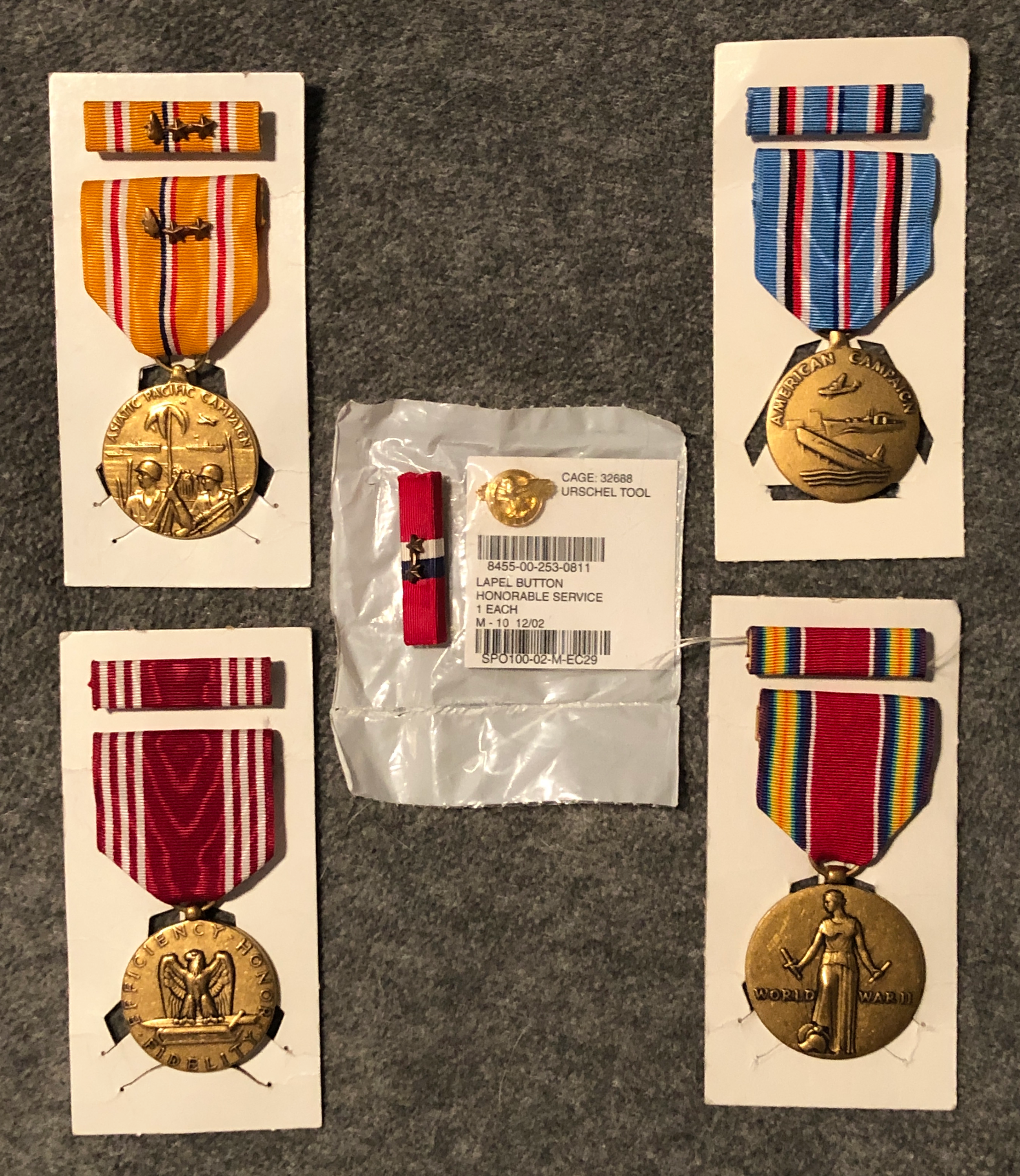 SERVICE MEDALS: • Philippine Liberation Medal w/Bronze Service Star • American Theater Service Medal • Asiatic Pacific Service Medal • Victory Medal • Good Conduct Medal BATTLES & CAMPAIGNS: • Southern Philippines • Luzon CLICK FOR A LARGE VIEW.