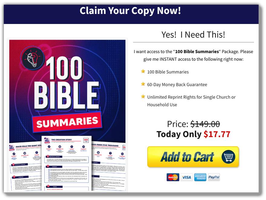 I’ll fetch that page to review the Bible summaries. Unfortunately, the sales page doesn’t show the actual content of the summaries—just marketing material and a sample image that didn’t load. I can only see that they claim to be “non-denominational” and “meticulously reviewed,” but I can’t evaluate the theological content itself.