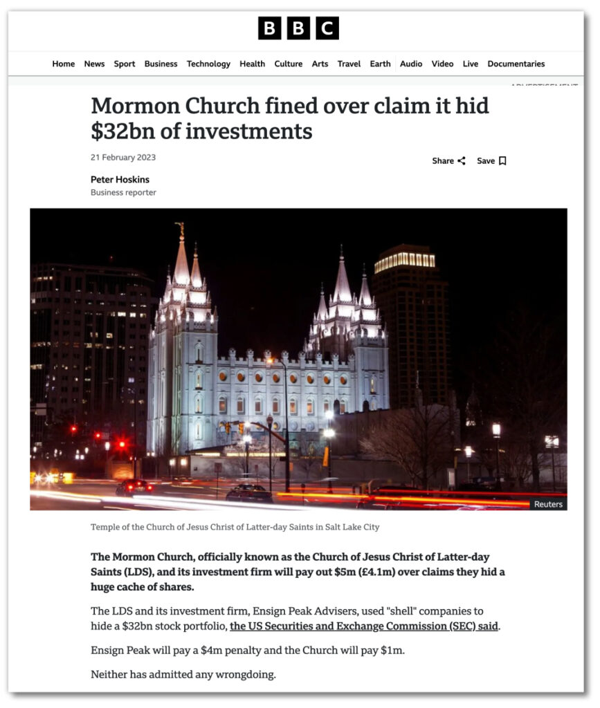 By virtually any measure, the Church of Jesus Christ of Latter-day Saints is the wealthiest religious institution in the United States and among the wealthiest on earth — a position achieved in large part through a culture of tithing compliance forged in the nineteenth century and an investment operation that functioned, for more than twenty years, in deliberate concealment from both its members and federal regulators. The SEC settlement of 2023 addressed the legal dimension of that concealment with a $5 million penalty — a sum so disproportionate to the scale of the violation that it functioned less as a rebuke than as a rounding error on a single afternoon’s investment returns. The legal ledger, by the institution’s own accounting, has been cleared.