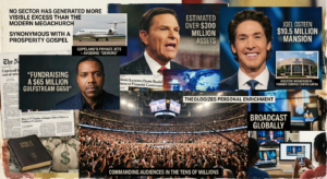 But perhaps no sector of American Christianity has generated more visible and documented excess than the modern megachurch. Pastors such as Kenneth Copeland, Creflo Dollar, and Joel Osteen have become synonymous with a prosperity gospel that does not merely tolerate personal enrichment — it theologizes it. Copeland, whose ministry assets have been estimated at over $300 million, famously defended his ownership of multiple private jets before his own congregation by arguing that commercial flights would expose him to the presence of “demons.” Dollar infamously asked his congregation to help fund a $65 million Gulfstream G650 private aircraft. Osteen, who reportedly declined federal pandemic relief funds for his Houston megachurch only after public backlash, lives in a $10.5 million mansion while his congregation occupies the former Compaq Center arena. These are not fringe figures. They command audiences in the tens of millions and broadcast globally.