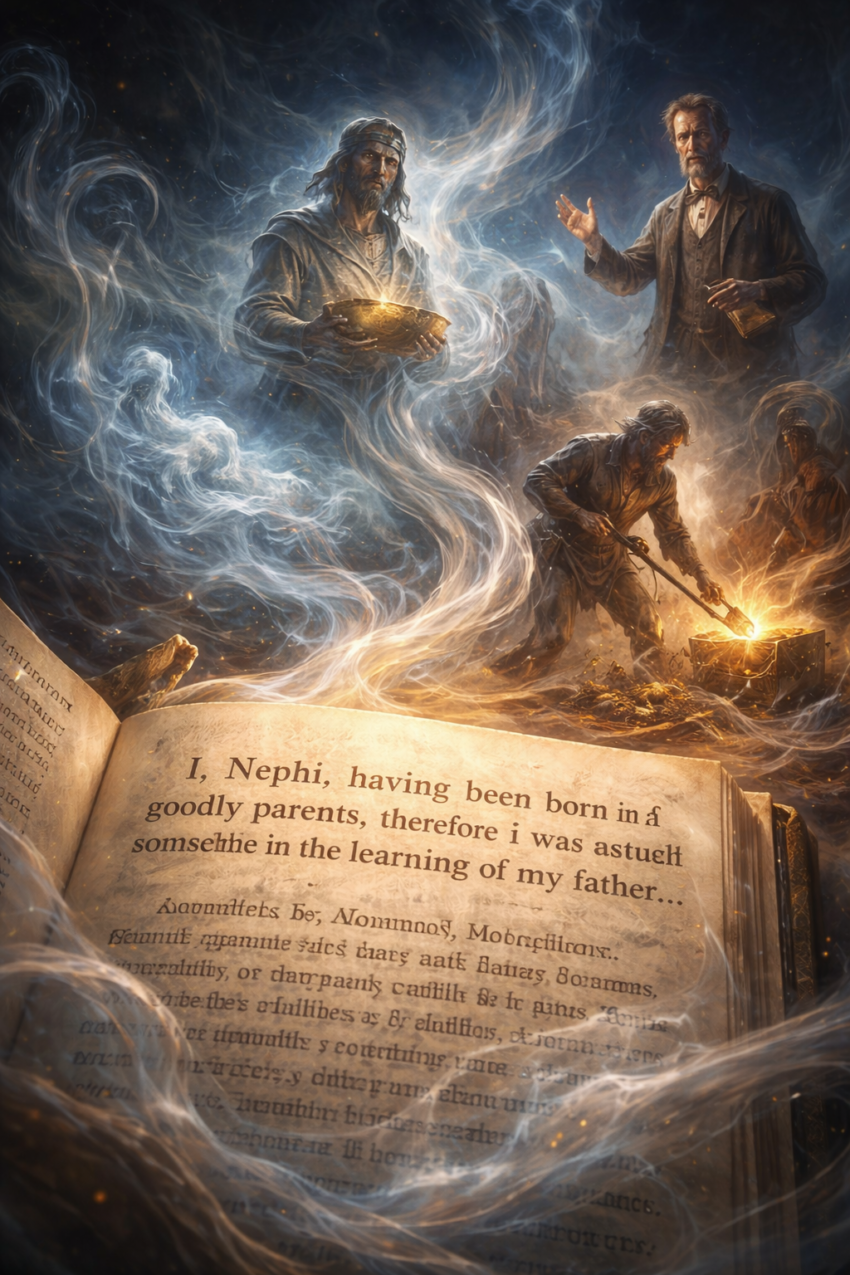 There is a passage that every reader of the Book of Mormon encounters within the first few seconds of opening the text. It is deceptively simple, almost disarming in its intimacy: “I, Nephi, having been born of goodly parents, therefore I was taught somewhat in all the learning of my father.” Eight centuries before the printing press, on gold plates carried across an ocean, a man introduces himself — in the first person, in a sustained autobiographical voice, in a style that feels oddly contemporary. To millions of Latter-day Saints, this voice is the voice of antiquity, divine testimony scratched into metal by a prophet of God. To a growing body of critical scholarship, however, that voice sounds less like an ancient scribe and more like a nineteenth-century American revivalist preacher — perhaps one who also happened to dig for buried treasure.