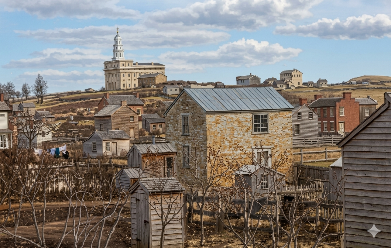 In the spring of 1844, Nauvoo, Illinois, was a city humming with expectation and dread. Built hard against a great horseshoe bend of the Mississippi, where the river slowed and widened as if pausing to consider what was happening on its eastern bank, the city had risen in the space of five years from a malarial bottomland called Commerce to one of the largest settlements in Illinois — a place that boosters compared, without apparent embarrassment, to Chicago and St. Louis. Brick homes lined the rising slope from the riverfront. A great limestone temple, still under construction, dominated the bluff above the city, its walls climbing toward a roof that would not be finished in time for its prophet to enter beneath it. Steamboats called daily at the Nauvoo wharf, unloading converts from England, Canada, and the eastern states — Welsh coal miners, Yankee farmers, English factory hands, all of them drawn by the promise of gathered Zion and a kingdom not of this world.